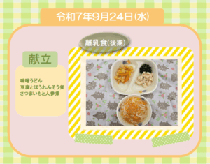 今日の給食(離乳食 後期) 令和7年9月24日