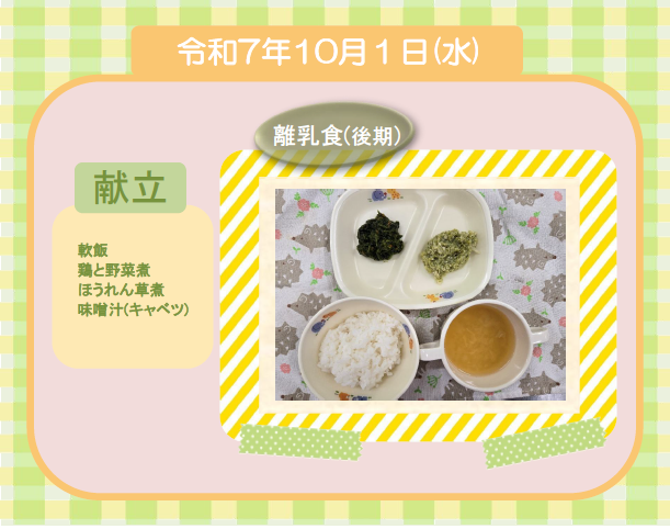 今日の給食(離乳食 後期) 令和7年10月1日