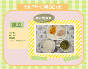 今日の給食(離乳食 後期) 令和7年10月8日