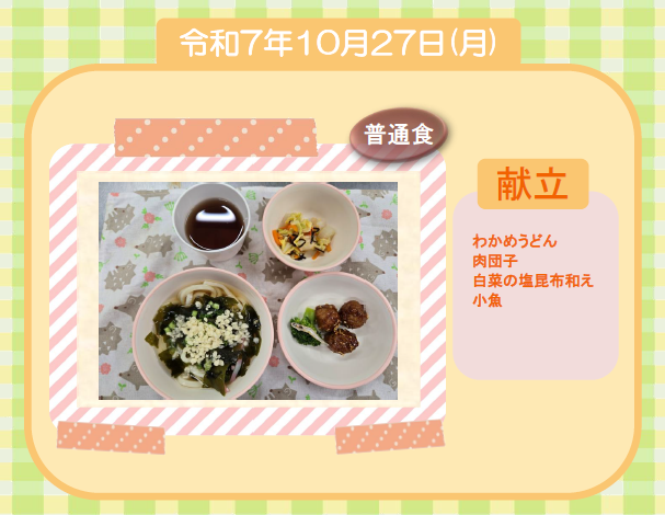 今日の給食(普通食) 令和7年10月27日