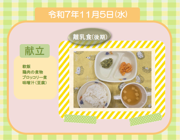 今日の給食(離乳食 後期) 令和7年11月5日