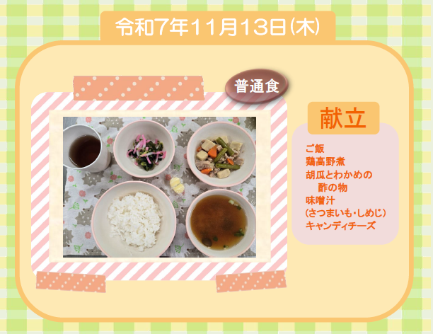 今日の給食(普通食) 令和7年11月13日