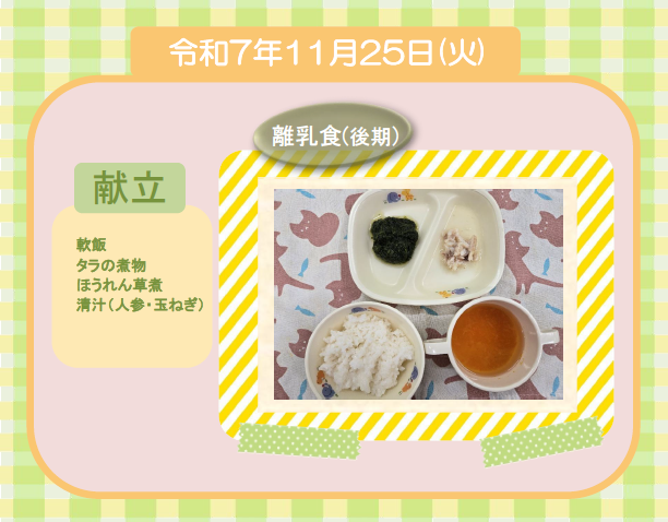 今日の給食(離乳食 後期) 令和7年11月25日