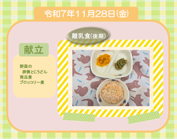 今日の給食(離乳食 後期) 令和7年11月29日