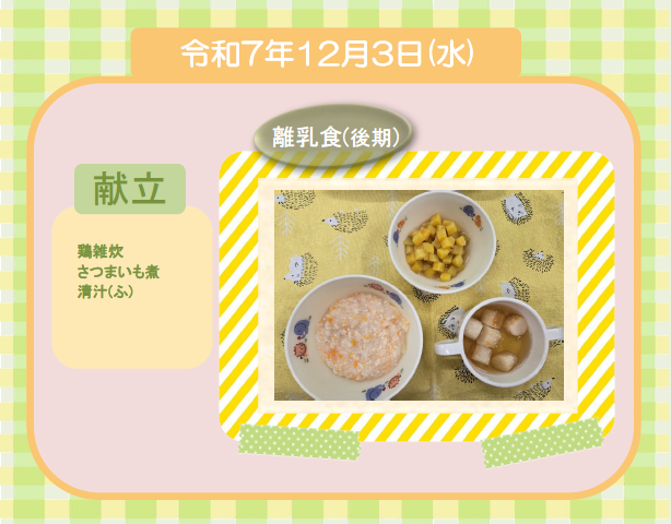 今日の給食(離乳食 後期) 令和7年12月3日