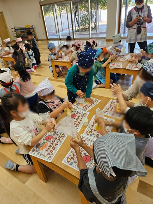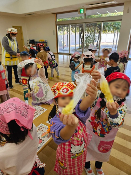 11月14日は、4歳児(うめ組)さんと 5歳児(すみれ組) さんが「さつまいも」で「スイートポテト」を作りました。