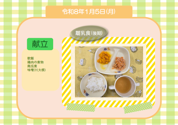 今日の給食(離乳食 後期) 令和8年1月5日