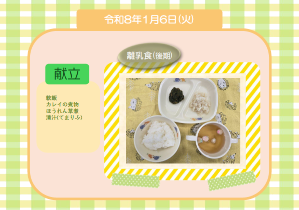 今日の給食(離乳食 後期) 令和8年1月6日