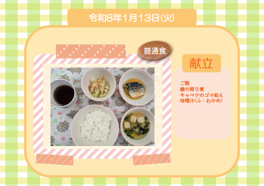 今日の給食(普通食) 令和8年1月13日