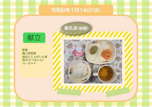 今日の給食(離乳食 後期) 令和8年1月14日