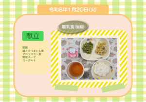 今日の給食(離乳食 後期) 令和8年1月20日