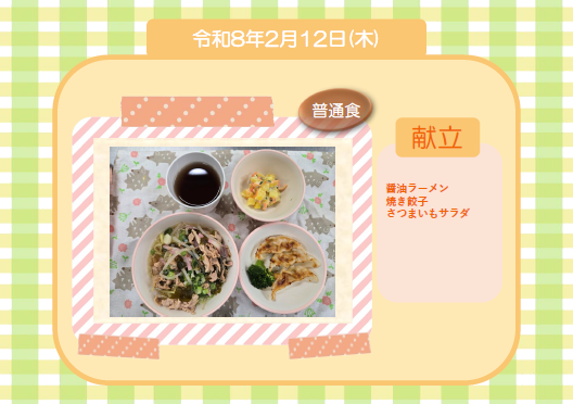 今日の給食(普通食) 令和8年2月12日