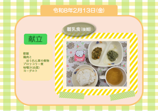 今日の給食(離乳食 後期) 令和8年2月13日