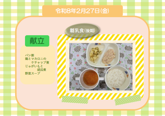 給食に合わせた夕食献立 (令和8年3月1日~3月15日)