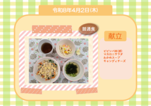 今日の給食(普通食) 令和8年4月2日