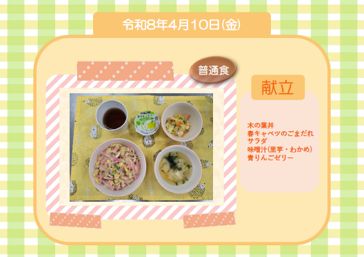 今日の給食(普通食) 令和8年4月10日