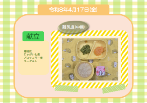 今日の給食(離乳食 中期) 令和8年4月17日
