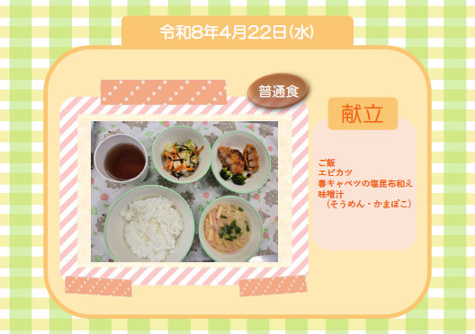今日の給食(普通食) 令和8年4月22日
