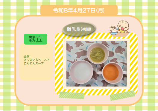 今日の給食(離乳食 中期) 令和8年4月27日