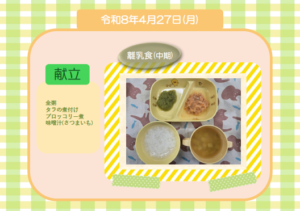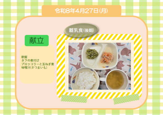 今日の給食(離乳食 後期) 令和8年4月27日