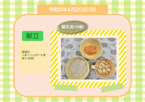 今日の給食(離乳食 中期) 令和8年4月20日