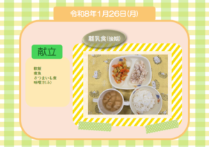 今日の給食(離乳食 後期) 令和8年1月26日