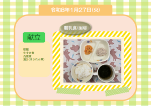 今日の給食(離乳食 後期) 令和8年1月27日
