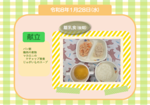 今日の給食(離乳食 後期) 令和8年1月28日